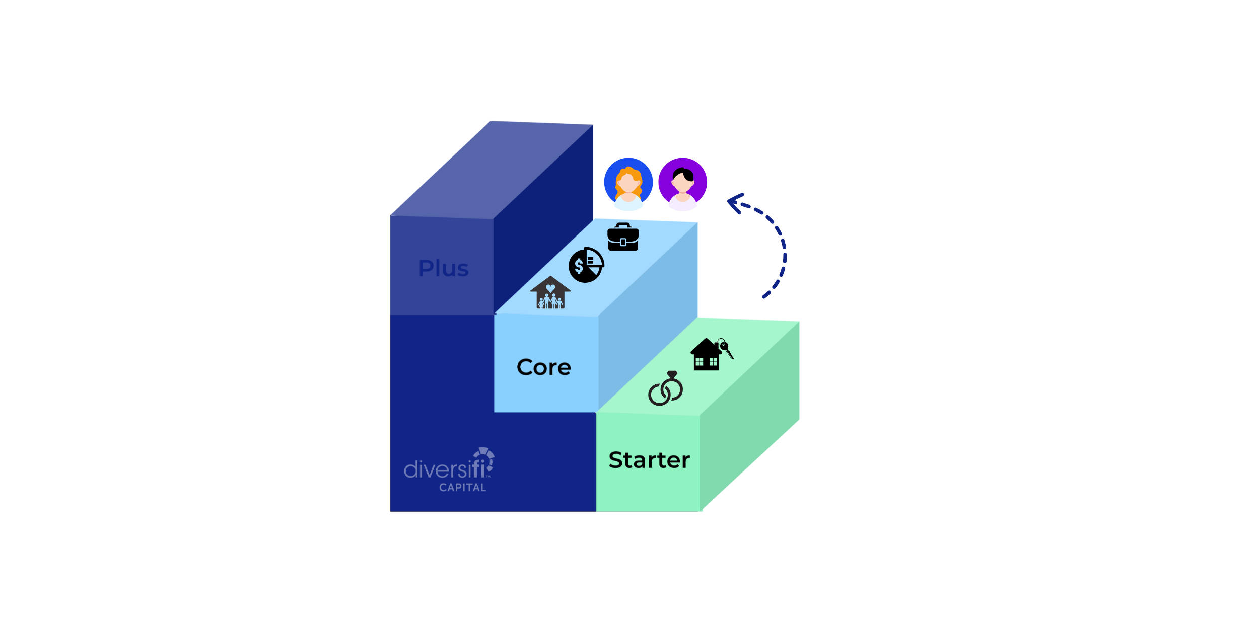 Starter: Ideal for early-career professionals ready to build a strong financial foundation. As your career, income, and life milestones, like marriage, buying a home, or starting a family, evolve, Starter clients often move into Core.